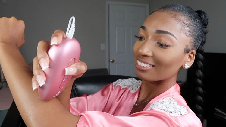 Laiza V“I used to have to shave EVERYDAY because of how fast my hair grows, but after just my first 2 sessions, I started noticing my hair was growing slower and I could wait longer to shave. It takes consistent use, but it DOES WORK, and I am so SO HAPPY with my results! I still have a few more sessions to go, but I'm already practically hair free, and I feel so much more comfortable in my skin! Thank you RoseSkinCo!”