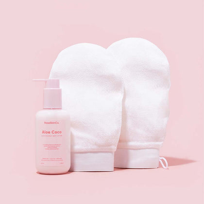 Gently yet powerfully remove dead skin cells with the Glow Glove to reveal softer, smoother, more radiant skin, then follow with natural-ingredient-packed Aloe Coco Body Lotion to soothe the skin and keep it hydrated.